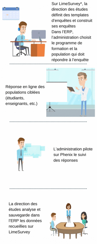 La direction des études analyse et sauvegarde dans l’ERP les données recueillies sur LimeSurvey